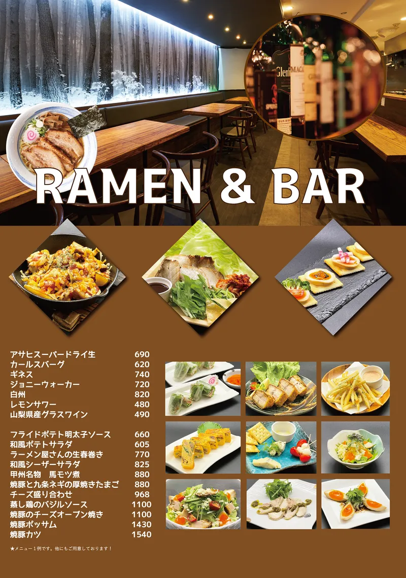 夜はラーメンの食材を全て使用したメニューを開発し、バル業態営業を行うようになりました。